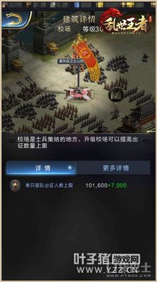 乱世王者校场玩法技巧?游戏中校场是士兵集合的地方,而升级校场可以提高出征数量上限,从而扩充我们的兵力,下面小编就带大家一起去看一下乱世王者校场玩法攻略! 【升级校场有优势】 校场既然是士兵集合的地方,那么就要建造一个有足够面积的场地保证校场的容量,而升级校场就会解决这个问题,当军队的数量足够庞大时无论是挑战野外敌兵,还是掠夺他人的领地,都会事半功倍的。 【了解部队详情】 作为沙场点兵的场所,校场可以清楚的了解城内部队和出征部队的兵力是否足够庞大,另外因为马超比较容易获得且升星容易,建议将马超委任于此,另外在委派一名战争型武将驻守城墙,可以提升我们的防守能力。 出征部队的选择将就与各大兵种的配合技巧,我们要时间关注资源的消耗和部队的数量,做到心中有数,另外武将可以在校场中晋升,晋升后的武将各属性都会得到提升,我们的综合实力就会增强。 [编辑:叶子猪小秘书]