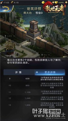 【知己知彼百战不殆】 如果在进攻敌方的时候,我们可以使用烽火台对地方的实力进行侦查,通过侦查我们可以清楚的了解对方的实力,在来比较一下我方的实力,做到知己知彼百战不殆。 【等级提升】 虽说目前烽火台满级是30级,满级后的烽火台侦查的情况会越来越具体,但是想要达到最高等级也并非易事,首先升级烽火台需要王城等建筑的制约,所以在这里告诉小伙伴们,升级建筑才是硬道理。 【守卫城池不可少】 在游戏中我们一定要时刻关注着烽火台的情况,如果发现敌情我们好第一时间做好守城的准备。以至于我们不会等敌方攻到城边的时候在做出反应。 [编辑:叶子猪小秘书]