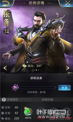 乱世王者张角怎么玩?张角是一位属性强大的紫色武将,那么张角该怎样获得,张角值得培养吗?张角的技能又是怎样搭配的呢?下面小编就带大家一起去解析一下乱世王者紫色武将张角! 【武将定位】 张角,紫色品质,辅助系武将,初始战力347。初始属性数值:战争65,发展62,辅助220。 【获取途径】 1、 黄巾起义:参加黄巾起义活动可获取张角将魂。 2、 抽取:通过点将台招募抽取该武将,高级招募有一定几率抽取,设置为寻访目标,抽取概率增加3倍。 3、 兑换:利用10个张角将魂可以兑换得到紫色辅助系武将张角,而万能将魂在武将未招募时无法兑换。 【固有技能解析】 高级平乱:攻打野怪行军速度提高(每100点辅助获得5.40%加成) 技能解析:打野最重要的是什么?当然是速度。比如,两个人同时看上一个野怪,后发先至是什么感觉呢?张角的固有技能高级平乱,奠定了其打野神将的地位。相比其它武将慢吞吞的移动速度,拥有高级平乱的张角移动速度跟瞬移没两样。 【武将技能学习推荐】 张角作为辅助系武将,在技能的选择上建议选择辅助系技能,推荐的技能有以下几个。 压制:攻打野怪时攻击力提高。 荡寇:击杀野怪额外掉落兵书。 还魂:个人进攻战斗产生的死兵,战斗结束后一定比例恢复成伤兵。 医术:个人进攻战斗产生的伤兵,战斗结束后一定比例立即恢复。 推荐技能分析:与攻打野怪相关的技能目前只有两个,压制可以大大增强打野部队的战斗力,有效的降低损失,提升收益;而荡寇,可以让我们获得更多的兵书,进一步的加大收益率。还魂和医术可视库存选择,减少伤亡也算变向的增加收益了。如此搭配起来的张角在虐杀各种野怪的道路上越走越远,无人可敌。 【武将成长】 1、武将升级:通过武将招募、商城购买、攻击野外敌兵获取兵书来为武将升级,初级兵书、中级兵书、高级兵书、极品兵书、绝世兵书可分别为武将提升300、1000、3000、10000、30000经验。 2、技能升级:通过技能研究、商城购买等方式获取技能丹对武将技能进行升级,初级技能丹、中级技能丹、高级技能丹、极品技能丹、绝世技能丹可分别为技能提升30、100、300、1000、3000经验。 3、升阶与升星:通过张角将魂或者万能将魂进阶,满阶后可以升星,最高为五星。 【总结】 [编辑:叶子猪小秘书]