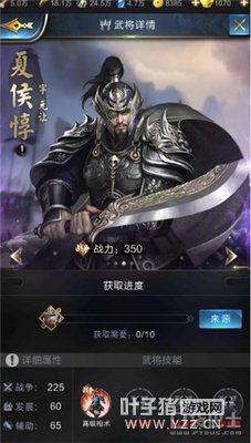 乱世王者夏侯惇怎么玩?夏侯惇是一位属性强大的紫色武将,那么夏侯惇该怎样获得,夏侯惇值得培养吗?夏侯惇的技能又是怎样搭配的呢?下面小编就带大家一起去解析一下乱世王者紫色武将夏侯惇! 【武将介绍】 武将生平:夏侯惇,字元让,沛国谯县人。曹操的从兄弟。汉朝开国功臣之一夏侯婴的后代。三国时期曹操最信赖的曹魏大将,官至大将军,封高安乡侯。 【武将获取方式】 1、武将招募:武将招募:高级招募获取,有4.43%几率抽取到紫色武将。普通招募无法直接获得,有5.18%几率抽取到紫色将魂。 2、将魂兑换:将魂可通过兑换,武将招募以及攻打势力据点获得,10个夏侯惇将魂可以兑换得到紫色武将夏侯惇。 【武将固有技能】 高级枪术:枪兵攻击和防御提高(每100点战争获得0.70%加成) 技能解析:相比高级骑射、高级弓术这些紫将能够拥有的技能,高级枪术的实用性更加的高。一般的队伍搭配中都会有枪兵的身影,比如,组成进攻队伍的兵种配置一般是枪兵、盾兵和近战骑。 [编辑:叶子猪小秘书]