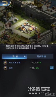 一个繁华的集市对于一座城池而言是十分重要的,幸运的是在《乱世王者》中我们每一位君主在城池中都可以自由建设属于自己的集市,这是不是非常给力的一件事情呢?今天就跟着小编一起来了解了解我们的集市吧! 建立集市,交易四方 集市的建立只是一个基础,在这个基础上我们才能够和别人展开交易,这样才能实现我们的最终目标——获取自己想要的资源。虽然我们可以在城池中建设属于自己的集市,但是从集市的交易来看还是有着一定的限制,首先是交易的对象仅限于同联盟类的玩家,其次每一次的交易有着一定的限额,并且需要交纳一定的税率,最后交易需要时间,并不是瞬间完成的。不过综合看来,虽然集市的限制不小,但是却依旧有些用处的,比如,可以迅速恢复实力或是快速发展。 轻松交易,互通有无 通过集市联盟内的各位玩家可以建立起稳定的交易路线,甚至是形成长期的交易关系。交易的对象既可以是资源,也可以是自己的部队。对于资源来说,交易时高昂的税率可以说让成本被放大许多,虽然随着集市等级的提高,税率也会不断减低,但是税率依旧不容小看。当然,如果你需要依靠交易来实现资源的补充,那么也就不会在意这些税率了。抛开资源,士兵的援助显得更加重要,不论是协同作战还是辅助防守,士兵援助将会给盟友或者是自己带来巨大的帮助,尤其是整个行会行动起来的时候。 压货出行,长路漫漫 集市带来的交易便捷相比给许多人都带去了福音,不过需要注意的是这个交易的过程是有时间限制的,我们需要花费一定的移动时间来实现这个交易的过程,时间的长短由城池之间的距离长短来决定。援助资源需要收税,不过援助士兵就不需要税率了,但是会受到对方城池援助部队容量的限制,这一点可以在援助之前就可以查看到,不要做无用功哦! [编辑:叶子猪小秘书]