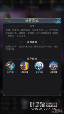 导读:荀彧,字文若。颍川颖阴(今河南许昌)人。东汉末年著名政治家、战略家,曹操统一北方的首席谋臣和功臣,被称为“王佐之才”,下面微臣就为各位主公详细介绍一番武将荀彧,大家一起来看看吧。 【武将定位】 荀彧,紫色品质,发展系武将,初始战力354数值:发展232>战争67>辅助55。 【获取途径】 1、抽取:通过点将台招募抽取该武将,普通和高级招募均有一定几率抽取,设置为寻访目标,抽取概率增加3倍。 2、兑换:利用10个荀彧将魂可以兑换得到紫色发展系武将荀彧,而万能将魂在武将未招募时无法兑换。 【固有技能解析】 高级开垦:委任在水车时,资源产量提高+4.18%(每100点发展获得1.80%加成) 技能解析:“开垦”技能,是荀彧的固有技能,也是提高所有资源产量的唯一技能,十分给力,由于其是紫色武将,相对橙将来说获取比较容易,所以荀彧成为普通玩家委任在水车的首选武将。 【推荐技能】 荀彧是发展型武将,让各位领主资源产量大大增加,所以推荐以下技能供各位主公选择并学习:伐木专精、炼铁专精、宝石专精和农耕专精。 伐木专精:委任在水车时,木材产量提高。 炼铁专精:委任在水车时,铁矿产量提高。 宝石专精:委任在水车时,宝石产量提高。 农耕专精:委任在水车时,粮食产量提高。 推荐技能分析:由于荀彧的定位是水车委任武将,所以推荐水车委任相关技能,用来加持荀彧的固有技能。荀彧的三个空位技能栏分别在其20级、60级、100级解锁,推荐各位主公选择伐木专精、炼铁专精和宝石专精。毕竟,除粮草外,其他三种资源均加持了荀彧的固有技能,粮草的来源还是比较广泛的,所以我们可以用采集的办法来获取,这里就不详细介绍了。 【武将成长】 1、升级:通过武将招募、商城购买、攻击野外敌兵获取兵书来为武将升级,初级兵书、中级兵书、高级兵书、极品兵书、绝世兵书可分别为武将提升300、1000、3000、10000、30000经验。 2、升阶与升星:通过荀彧将魂或者万能将魂进阶,满阶后可以升星,最高为五星。 【总结】 [编辑:叶子猪小秘书]