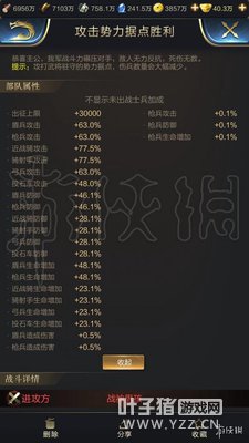 《乱世王者》中,没有什么比攻城更有趣的事情了。看着别人幸幸苦苦发展好的城池,转眼间被我们攻打下来,别提有多自豪了。那么攻城毕竟是件难事,说简单它还不简单,说难也不怎么难,专门看你对兵种的安排。下面小编就为玩家带来《乱世王者》手游快速攻城兵种组合技巧,一起来看看吧。 快速攻城兵种组合技巧 [第一组,张飞和夏侯惇搭配的最强枪兵] 枪兵,诸位主公都有应该知道,基本上有很多主公的城池被攻下来,主要是枪兵在中间帮忙。因为枪兵可以防止任何敌方士兵进攻我方后排,所以在战场上枪兵往往有着决定胜负的兵种,那么下面就来看,最强枪兵的快速攻城。 每一个兵种,在出征的时候,总是要选取主副将来领到军队,那么这次,张飞和夏侯惇被我们选中,成为先锋军队。 [武将简介和出征的兵种数量] 张飞主公们应该认识,是橙色武将。实力绝对够强。夏侯惇,紫色品质的武将,可以称为枪兵将军。 俩个都是对枪兵有着特殊的增幅,那么在这次的攻占当中,枪兵会怎么大放光彩呢?既然都说了,这次的战斗,枪兵是主角。所以兵种搭配自然而然的就是以枪兵为主力,推荐带有兵种为盾兵、枪兵、投石车、近战士、弓兵、盾兵的人数应该搭配到四万左右,毕竟抗伤害,枪兵和投石车的人数都应该配置到三万左右,近战士和弓兵的人数应该为一万左右。这样的搭配可以发挥出枪兵最大的实力。 [对枪兵的增幅] 枪兵,第一组的重点兵种,那么主副将对枪兵的增幅有多少呢?主公们来观看。 在对这些出征的兵种当中,获得增益的最大就是枪兵了,其中盾兵攻击比原来提高了55.3%,近战射手和骑射手比原来提高了47.3%,其中最为突出的就是枪兵,攻竟然比原来提高了174%,经过这些数据表明,张飞和夏侯惇俩个搭配的兵种,枪兵,可以快速的拿下敌方城池,还可以吧伤亡降低到最少。 [第二组,甘宁和曹操搭配的弓兵和盾兵] 弓兵和盾兵,主公们在任何战役当中,觉得能看到他们的身影,一个后排,高输出 低护甲,低生命,一个前排,高生命,高护甲,低攻击,利用盾兵的俩个“高”来弥补弓兵的俩个“低”,同意利用弓兵的一个“高”来弥补盾兵的一个“低”,那么他们攻城的速度到底有多快呢?且看分析。 [武将简介和出征的兵种数量] 甘宁,紫色武将,弓兵的司令,曹操,橙色武将,盾兵的霸主,当俩个武将相互配合的时候,会有怎么惊人的效果? 弓兵和盾兵,是我们第二组的重点兵,弓兵也是我们主要兵种的输出,盾兵主要的抗伤害,给弓兵增加更多的攻击时间,那么推荐的兵种数目为,盾兵数目为五万左右,弓兵数目为俩万左右,投石车的数量为五万左右,其中盾兵可以保护投石车和弓兵,但是主要输出位置在弓兵身上,所以必要的时候,投石车也可以保护一下弓兵。 [对弓兵和盾兵的增幅] 甘宁弓兵的司令,曹操盾兵的霸主。一个司令一个霸主,那可对弓兵和盾兵的增幅可是不小的,盾兵的生命比原来提高了76.3%,攻击比原来提高了98.7%,防御比原来提高了74.3%,弓兵的攻击比原来提高了99.2%,防御提高了79.2%,生命比原来提高了54.2%,由此看见,光是这样的气势就可以吓哭敌人,弓兵和盾兵,甘宁和曹操,觉得是所到之处,寸草不生。 [最后一组,战神配张角所有兵种的增幅] 战神橙色武将,张角紫色武将。战神全方位增幅兵种的攻击,张角大幅度提高出城攻占城池的行军速度。一战争、一辅助以最快的速度到达目的地。 战神既然是全方位增幅兵种的攻击,那么随便选任何士兵都会获得增幅。下面还提供战神和张角出征该带的兵种数量。 [战神和张角出征携带的兵种数量和增幅] 在图中,可以看到,盾兵的人数推荐携带人数为俩万左右,近战骑的人数推荐携带一万左右,弓兵推荐携带俩万左右,投石车推荐携带人数为一万左右,枪兵的人数携带推荐为一万左右,下面来看对兵种的增幅。 战神是全方位提高所有兵种的攻击,所以,盾兵和枪兵攻击比原来提高了63%,近战士和骑射手的攻击提高了77.5%,弓兵攻击比原来提高了63%,投石车攻击比原来提高了48%。这些数据表明,战神提供的增幅是不错的。 攻占城池,需要配对士兵和派遣武将,各位主公需要根据对方的城池的守军来搭配士兵和派遣武将,以上就是《乱世王者》手游快速攻城兵种组合技巧,希望玩家会喜欢。 [编辑:叶子猪小秘书]