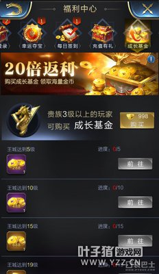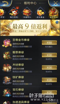 在《乱世王者》中,主界面右上侧有一个福利中心,在这里集结了一段时间内游戏中的大部份福利活动,如八日登陆、每日签到等,点击即可获取奖励,是非常轻松、愉快的游戏物资、物品获取基地。接下来就让我们详细了解一下福利中心,看看现在都有些什么福利活动吧。 【充值有礼,神将张飞免费送】 游戏中的武将从低到高依次分为普通武将、名将和神将三个档次,在游戏里只要首次充值任意金额的元宝,即可以在福利中心充值有礼页面领取首充大礼包。其中不仅有金币、高级招募卷等物品,更是包含了超强神将张飞。完成首充的主公们千万不要忘记来领取哦。 【成长基金,20倍返利】 在成长基金页面,花费998元宝可以购买成长基金,在主城达到一定等级时可领取相应的金币礼包,所有等级的基金礼包合起来为20004金币,而金币和元宝的正常兑换比例是1:1,所以约等于20倍返利。成长基金是非常超值,但需要注意的是贵族3级以上的玩家才能购买成长基金。 【幸运夺宝,好运滚滚来】 幸运夺宝即然被归类到了福利中心,那么就应该有其福利,每日可免费参加一次,点击即有机会获得宝石、物资、兵书、加速道具和神将碎片等物品。每日的免费次数以后,需花费元宝参与,当然如果使用购买10次选项可获得九折优惠。 【八日登陆,新手福利】 任何新角色用户,每天登陆游戏即可获得大量金币、物品奖励,并且在第二天即可获得2星名将小乔,再之后还可获得大量小乔碎片,完成八天登陆即可让小乔升至5星,称得上点击即送的代表活动了。 【每日签到,晋升贵族】 每日签到不仅能获得君主经验、招募卷和爱心,更能获得贵族经验,贵族经验可以用于升级贵族等级。虽然签到给的贵族经验较少,但相比于其它游戏只能通过充值来获取贵族经验,这里的福利还是诚意满满的。 【皇室俸禄,九倍返利】 在皇室俸禄页面,可以直接使RMB购买各种俸禄礼包,购买后每日可领取相应的俸禄,最高可达到9倍返利,非常值得购买。但需要注意的是,俸禄不会累积到下一天,需每日领取,并且此项消费不能获得贵族经验,不算首充、累充等。 [编辑:叶子猪小秘书]