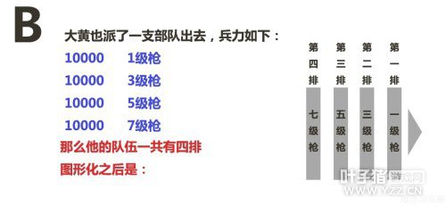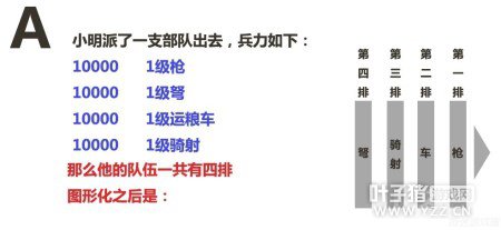 前段时间的富人篇攻略实际上已经写好了,但是几个好友因为一些不可描述的原因不让我发。为了弥补大家,这里给一份更加重量级的攻略:单人战争体系。 【排数】 乱世整套战斗是依托在排数的概念下进行的,那么什么是排数,排数影响什么? 先来让我们看两个例子: 所以总结一下,排数原理: 1. 每支部队中每一个不同的兵种是1排。 2. 同一个兵种的不同等级是不同的排数。 3. 各兵种的攻击距离,可以理解为攻击距离1=1排 【布阵】 好了我们理解清楚排数之后我们来看看布阵。 在乱世中,一场战斗中的所有不同兵种的排数顺序是固定的,其中有这个那个的关系,我们先来看看张案例图: 那么有人要问,我同时带了一样的兵种这个顺序怎么排,让我们看下面一张案例图: 所以总结一下,排数原理 1.不同兵种按照图一的先后顺序排列。 2. 同一种兵种不同等级,等级低的排在等级高的前面。 【回合】 正常战争的过程是通过多个回合进行的,目前测试下来;回合数会远远小于同类型的某款游戏;根据死兵的测试,应该在100回合以内。 虽然打起来极其不爽,但是可能为了保护用户误操作和误判的损失吧。 【战争原理】 好了,说好了排数,布阵,和回合都介绍好了,这里要和你们说一下战斗的核心原理: 先看看根据目前我们掌握的知识对战双方是怎么样的. 本来想把整个战斗过程模拟出来,但是盟里被人骚扰了,我就懒得在这里重新花功夫模拟战斗了,以下是战斗规则: 战斗开始两军第一排之间是存在空间的,近战部队需要向前移动才可以攻击敌人。 整个战斗是回合制,如果某排兵本回合无法攻击到敌人,则会向前移动一排。移动就不会攻击,攻击了就不会移动。 [编辑:叶子猪小秘书]