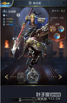 攻击:★★★★☆ 血量:★★★ 防御:★★★★ 技能: 1)有一定几率在战场中进行“冲锋”,优先攻击远程兵种; 2)“奔袭”可进一步提高骑兵的移动速度; 3)“闪避”使得近战骑有一定几率闪避掉所受攻击; 解析:作为高机动兵种,天生就是所有远程兵种的噩梦,但需要注意的是在枪兵面前近战骑几乎无还手之力,所以遇到枪兵时需暂避锋芒。 以上就是叶子猪小编乱世王者的相关攻略,更多关于乱世王者的资讯动态请关注叶子猪手游第一门户