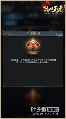 技能效果:使用后侦查或攻击你的敌人行军时间或提升五倍,持续三十分钟。 使用技巧:这是一个预判技能,因为得到烽火台传达过来的消息后再使用就已经晚了,所以一定要警惕,建议各位在军队力量薄弱时使用,可以起到防患于未然的效果。即使对方并没有袭来,只能是浪费了一次机会,并不会产生特别严重的后果。倘若敌军真的袭来了,那么拖延战术也是非常好的方法,拖住敌人并使用其他辅助技能增益自己,即使是短暂的提升城池力量也可以与敌人抗衡一番,鹿死谁手也是未知的情况。此技能需要在游戏中反复摸索,才能更好的进行操作。 以上就是18183小编乱世王者的相关攻略,更多关于乱世王者的资讯动态请关注18183手游第一门户,叶子猪小编将在您的游戏道路上为您保驾护航。 [编辑:叶子猪小秘书]