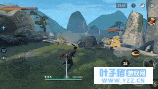 此外,玩家可以灵活使用轻击重击的各种组合打出不同技能,适时切换武器可以不中断连击。游戏中不同武器有两个固定技能,与一个“怒气大招”。 游戏允许玩家巧妙利用地形施展轻功蹬到空中,来一招“从天而降”的 剑法。