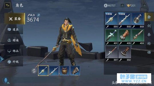 我这里装配的是剑和枪,剑攻击灵活(虽然比不过拳套 但是攻击距离远 而且还帅),枪穿刺性高。