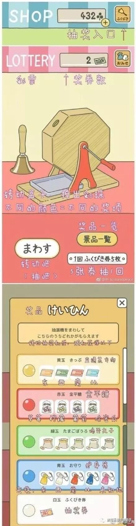 抽奖券获得方法: 1、在商城买东西随机赠送; 2、青蛙旅行带回来(一般是一张); 3、看蜗牛君给的广告; 4、喂蜗牛之后蜗牛的谢礼 5、抽到白球后返还一张 四、各种道具物品的特点