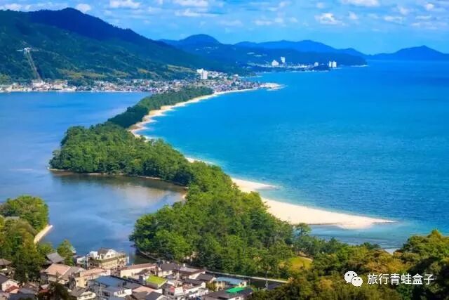 天桥立是簇拥着约7000棵松树的长3.2公里、宽40~100米的长条型沙洲。就在京都的砂州, 被称为日本三景之一 。