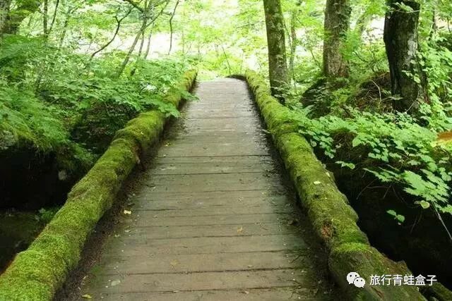 入道崎是在秋田县的男鹿半岛的最北端,北纬40°线上,它凸向日本海的一个海角。就是这个在入道崎矗立上的,黑白两色大型灯台,入选了观赏日本的海景,被评为落日美景五十个灯台之一。 02青森县:奥入濑溪流 苔桥