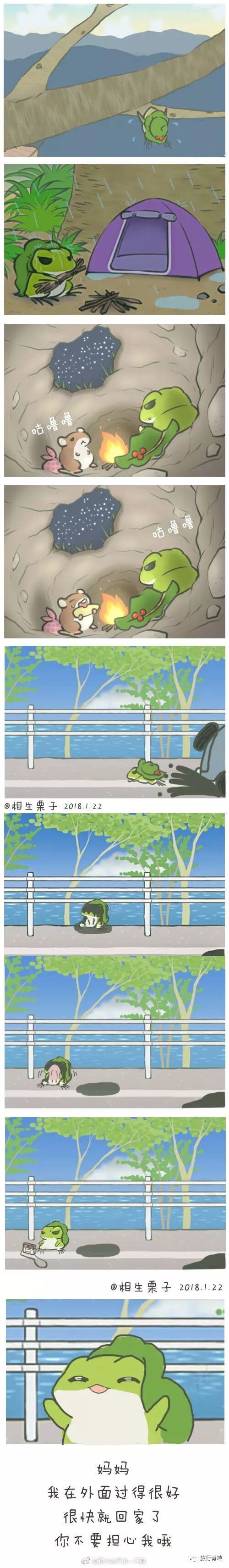 以前总是嫌弃妈妈烦,回一趟家什么都往我包里塞,一边唠叨一边给我做好吃的。我爱理不理的回应着,理所当然的依赖着。玩过《旅行青蛙》之后,我突然理解了妈妈。 “它怎么看书看那么久,会不会对视力不好?” “今天它出去玩,会遇到新朋友吗?” “它怎么还不回来,该不是遇到危险了吧?”