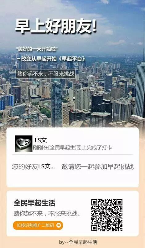 (温馨提示:平台现在正在大力推广期间,这是老牌打卡平台了,我已经在他们打卡平台打了半年了,现在平台每天补贴 1万元 ,让所有早起的朋友都有钱过大年 …… ) 收获一个好习惯 还有现金红包奖励 对于平时就早起的同志们来说 这简直就是 送钱 !! 接下来小编将隆重 为大家介绍如何参与打卡赢现金 ☟☟☟ 第一步:扫描二维码关注公众号 ;