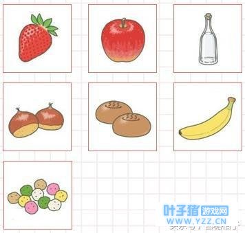 喜欢的食物:草莓、苹果、香蕉、五色豆等…(如下图所示)