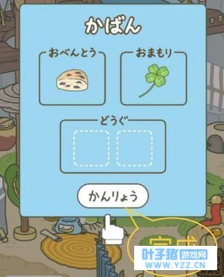 【整理背包】背包里是由三个部分组成:おべんとう(便当)おまもり(护身符)どうぐ(道具)按照图片指示整理好背包点击「かんりょう」(完成)就可以了。