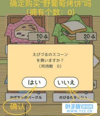 【购买便当】用收割获得的18枚三叶草去商店买便当时,点击“野葡萄烤饼”,此时出现红框圈定,点击购买确认就可以了