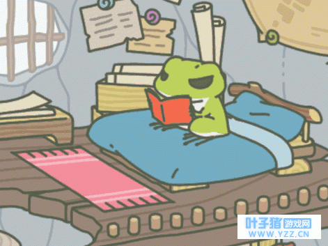 03 游戏里 蛙蛙会坐在床上认真地看书 我们的最开始的欣慰在几个小时后会变成担心 “怎么还在看书......不会脑壳坏了吧”