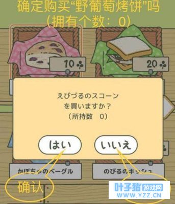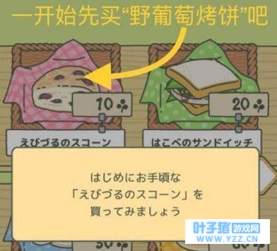 5、【购买便当】用收割获得的 18 枚三叶草去商店买便当时,点击“野葡萄烤饼”,此时出现红框圈定,再点击一次就会出现购买确认窗口了。
