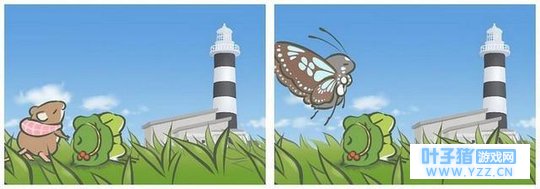 ❤普通明信片 难度:容易~一般 特点:无名景色 蛙蛙的动作表情,天空颜色,云,苔藓,树叶的位置都是随机的 所以即使很容易获得,也会因为随机的特点产生很多有趣的照片,是截图排小剧场的好帮手 ↓随便贴几张照片,蝴蝶老鼠螃蟹都可能出现,不限于我举的例子 ❤草丛,容易获得,不管带什么都有可能出现