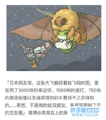 最后友情提示大家邮箱内的邮件上限100封,记得即使领取物品。游戏内相册最多储存10张照片,记得将喜欢的保存在手机中。如果自家蛙不回来了就在家准备好食物等它吧!碰到贝爷什么的几率很小啦。 |