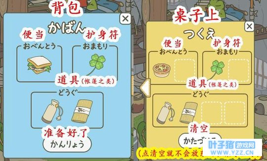 2、准备旅游物品。如果背包、桌子都没有东西,你的蛙蛙可是不会出门的哦!
