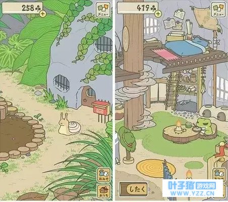 和那些呆在井底的家伙不一样,这是一只向往「诗和远方」的青蛙,他绝大部份时间都在外面旅行。 在家的时候就吃吃饭、看看书、写写信、削削木头,过着一种诗意的生活。看着他在家的乖乖宝宝模样,你会不由自主地露出一股”老爹妈”的微笑。 他的行程不受你的控制,你甚至不知道他的日程安排。你需要做的就是收割三叶草,然后用三叶草为青蛙兑换食物和装备,供它吃饭或旅行。
