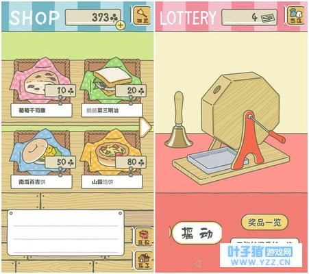 “商店”键点开即可购买青蛙需要的食品、物品,在“商店”内的右上角还隐藏着抽奖键,集够5张抽奖券即可摇动奖盒抽奖。