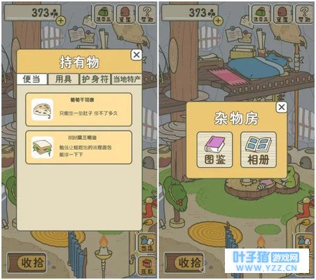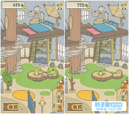 此外,屏幕右上角的菜单键负责收纳青蛙所有的携带品和寄回来的照片与纪念品。