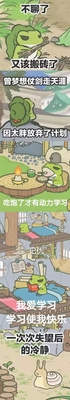 那么,这样一款操作简单、甚至听起来有些“寡淡”的养蛙游戏是如何令人一见倾心、欲罢不能、甘为“父母”的呢? 从游戏设计的角度,它具有以下优点: 首先,界面设计贴近生活,注重细节,简约但经典耐看。 蛙蛙的形象并不复杂,大大的眼睛,淡定的表情,隐隐有一种贱萌又坚定的气质。 蛙的神情贴近生活,看书久了会打瞌睡、头耷拉下来到胸前,样子真的像个一学习就犯困的小孩子,让人感觉这只小蛙确实好可爱。 也不知在看什么“红宝书”呢~