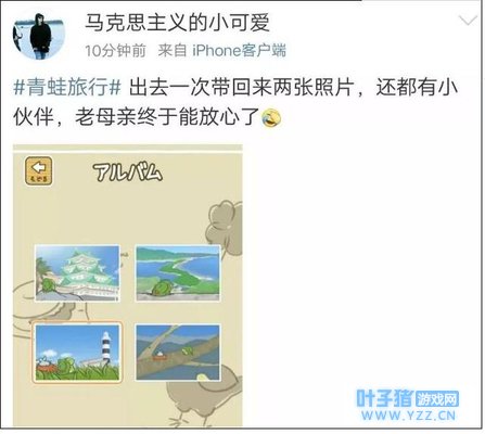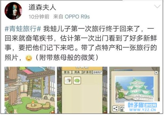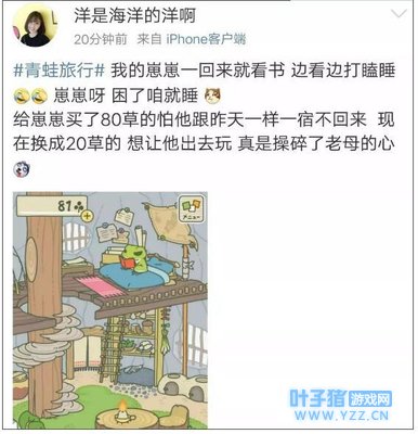 最近 一款佛系休闲小游戏《旅行青蛙》 让很多朋友和小编一样 变身苦苦等娃的老母亲 在游戏中玩家化身“蛙妈妈” 看着蛙儿子出门、回家、吃饭、看书 却完全无法干涉它