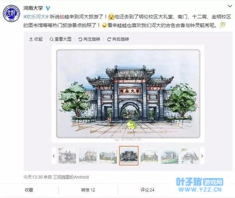 14、湖南大学 湖南大学也没闲着,官方借势,用青蛙元素与大学景点结合,与前面蚂蜂窝的借势类似。