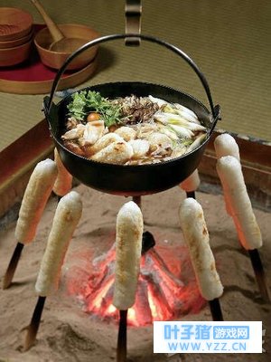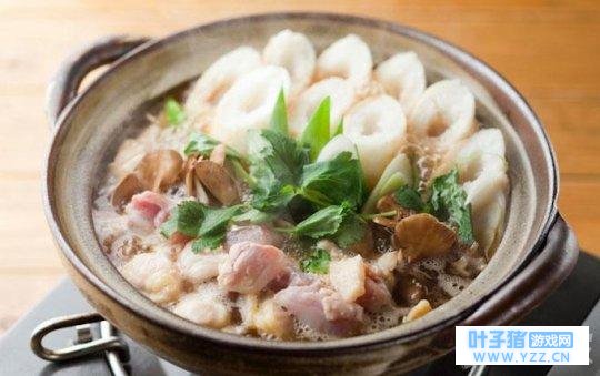 就是把捣碎的米饭像鱼卷一样卷在杉木串上,烤成米糕,从串上取下,切开食用,这就是“切蒲英”。切蒲英是秋田县的特产,可以放入鸡汤里煮,也可抹上味增烤着吃。把切蒲英与秋田特产比内鸡(鸡的名称)等鸡肉和牛蒡、水芹、大葱等蔬菜,一起放入鸡肉酱油汤中炖煮,这是秋田的极具代表性的特色料理。它的特点在于牛蒡、水芹的丰富口感,切蒲英因汤汁而软糯入味、入口即化,让人忍不住多吃几口。