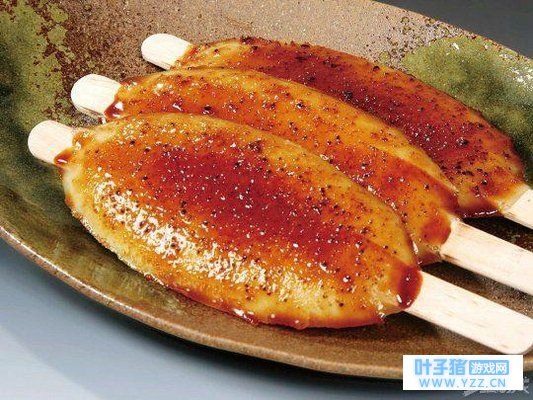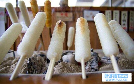 日语虽然叫做“年糕”,却不是用糯米做的,是将粳米饭粒压扁,团成圆饼后串在签子上烤制而成,连烤焦的部分都很好吃。据说过去每年春天和秋天都供于神前,祈祷丰收以及感谢收获。