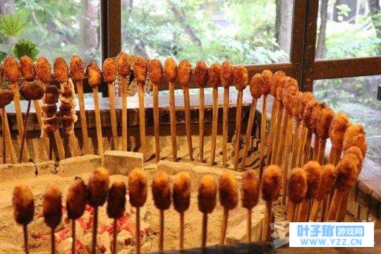 烤馒头是群马县的一种特色食物,将蒸好的馒头(日本的馒头和中国不一样,有豆酱内馅)串在竹串上,两面都涂上黑砂糖或麦芽糖制成的浓郁甜面味增酱后放在火上,烤至出现焦痕,是一种很受欢迎的小吃。当然,烤馒头要趁热吃才好吃哦~蛙蛙带回来的估计都凉了囧……