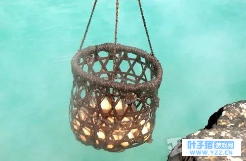 与小呱这张照片构图几乎相同的,是别府观光协会中的一张宣传图。那种蒸蛋方法叫“地狱蒸”,不出意外的话,小呱应该是看了这张图之后来的一场“圣地巡礼”。而吊在这个筐子里的,显然就是当地正宗的“温泉蛋”了。