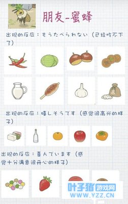旅行青蛙怎么招待蜜蜂 1、点击庭院的蜜蜂,之后就会弹出一个特产列表,按照蜜蜂的喜好点击特产就可以了。 2、蜜蜂对于不同的特产感受是不同的,如上图! |