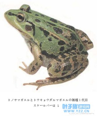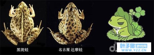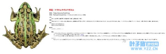 达摩蛙与黑斑蛙的杂交品 现在,我们的呱是什么品种的,大家都明白了吧。应该就是达摩蛙与黑斑蛙的多代杂交品种了!等等……这种青蛙好像是日本青蛙刺身的原材料吧,细思极恐啊。原先以为这个游戏宣传的是日本旅游业,现在才明白,这原来是日本的动物保护组织做出来的啊!
