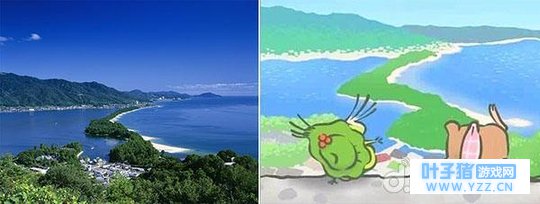 京都天桥立。因为地壳的推挤作用,在海上形成一个沙洲地形,约8000株松树组成的街道树连绵不断,被日本人誉称为丹后之天桥立,其与安艺之宫岛及陆奥之松岛共同被称为“日本三景”。我们的呱拍照的地方也被称为最佳的观景点。