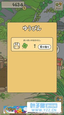 一进来的是主界面,左边是三叶草的花园,三叶草就是游戏中的钱币,要固定时间请进来采集。 有时候会采收到四叶草 !可以当作旅行中的护身符使用。 点击右下角的房子图案 “家”( おうち )即可进入到家中。