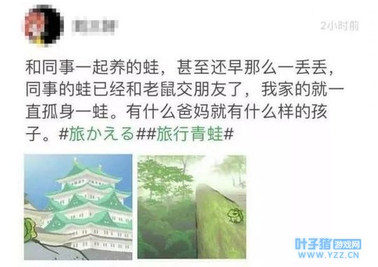今年1月份,一款名叫《旅かえる》(《旅行青蛙》)的日系游戏突然刷爆朋友圈,朋友圈里的每个人似乎都在养青蛙呱呱晒青蛙呱呱,而这只萌萌的小青蛙也被网友们称为“佛系青蛙”,特别深受广大女玩家们的喜爱。 玩得过程中也由此冒出许多啼笑皆非的事来: