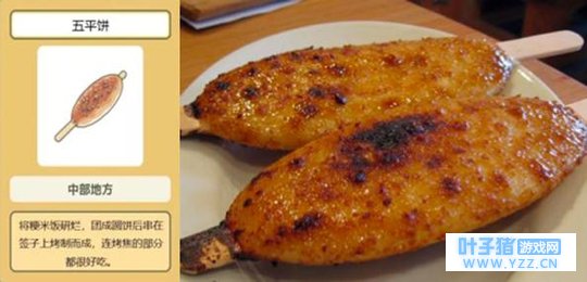 烤团子是群马县的一种特色食物,将蒸好的团子串在竹串上,两面都涂上黑砂糖或麦芽糖制成的浓郁甜面味增酱后放在火上,烤至出现焦痕,外酥里嫩,广受年轻人的追捧。 · 五平饼 ·
