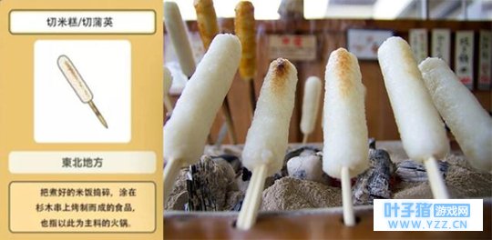 把捣碎的米饭像鱼卷一样卷在杉木串上,烤成米糕,然后从串上取下,切开食用。切蒲英是秋田县的特产,可以放入鸡汤里煮,也可抹上味增烤着吃。软糯不粘牙,老少咸宜。 · 烤团子 ·