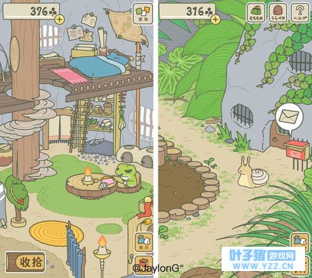 (游戏场景) 它有可能喜欢看书,有的蛙喜欢削木头,有的蛙喜欢写日记…… 可以偷看它写好的日记,也可以翻阅它到处旅游的写真,偶尔还会有小动物会来做客。 游戏的玩法就是如此简单,感兴趣的朋友可以去试试毒。