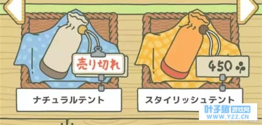 帐篷 根据价格从低到高,分为 天然帐篷、时尚帐篷、高科技帐篷 。 选择携带帐篷,蛙蛙较大几率 会去野营 ,寄回的照片上支着帐篷。 携带价格越高的帐篷,去野营的可能性越大。