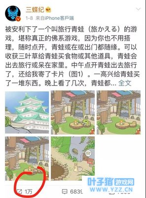 与此同时几乎是一夜之间,朋友圈也变成了「蛙儿砸的守候基地」,让人不得不深思:一款日本游戏是如何霸占中国榜单的?本文将围绕该问题展开探索和思考。 爆红历程简述第一阶段:1月8日~10日 一条微博惹的祸经笔者查询,发现一条1月8号的微博