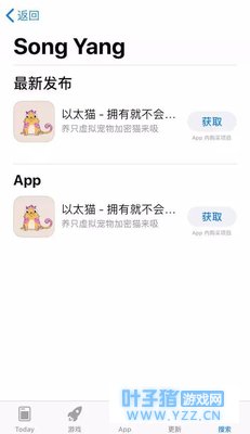 如图所示, 该开发者还开发了《丛林大逃杀 - The Last Winner》、 《以太猫》等手游, 模仿目标覆盖大逃杀、区块链猫等领域。 在早期,他还曾推出“抢红包外挂神器”、 “多开问答”等辅助工具, 不过目前都处于下架状态。 在所有的App中, 还在线的只剩下刚刚上线不久的《以太猫》和《旅行青蛙.》。