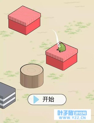 跟微信小游戏“跳一跳”一模一样, 玩家可通过触摸屏幕控制青蛙在盒子上跳跃, 获得积分 不过画风稍变, 是一只青蛙根据按压时间向前一个落脚点跳过去。 但在每次失败后, 会自动跳出一个广告,