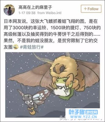 突然就理解了我爸经常在微信上跟我说的:“多给我发两张你的照片"...... 你知道它会离开,也知道它会回来,但是无论如何(花钱也好,看攻略也好),你都无法完完全全掌控它的一切,让它按你的想法生活; 但你依然会在它回来之前准备好吃的用的,时不时打开门看看它在干什么; 在它外出的时候猜测它去了哪,然后一遍遍翻着邮箱,看它寄回来的一幕幕风景; 有时候想去陪伴它,有时候又怕打扰了它,有时候各自忙碌着,有时候彼此牵挂着; 日复一日... 这不就是我们的生活吗?有时候是在路上的它,有时候是在家里的你,归根到底就是我们。 万万没想到,2018年的第一位超级大网红,竟然是一只青蛙: