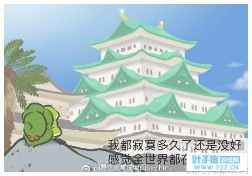 在蛙蛙的明信片中, 展示着它邂逅的种种美好。 起初还是孤独的游客照, 晴朗的天空下, 是蛙蛙独自眺望的背影。